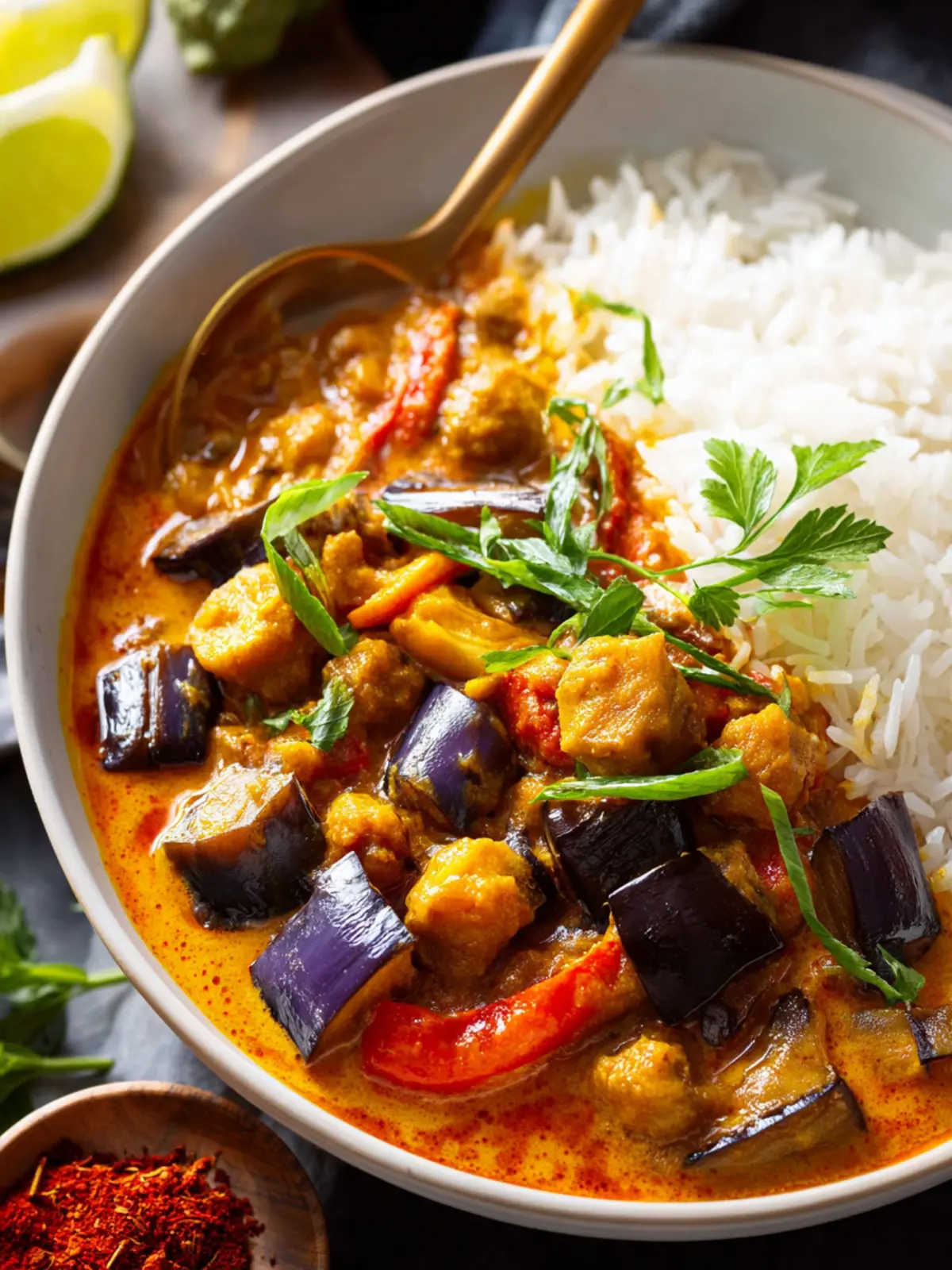 A flavorful and hearty eggplant curry that is perfect served with basmati rice or naan bread.