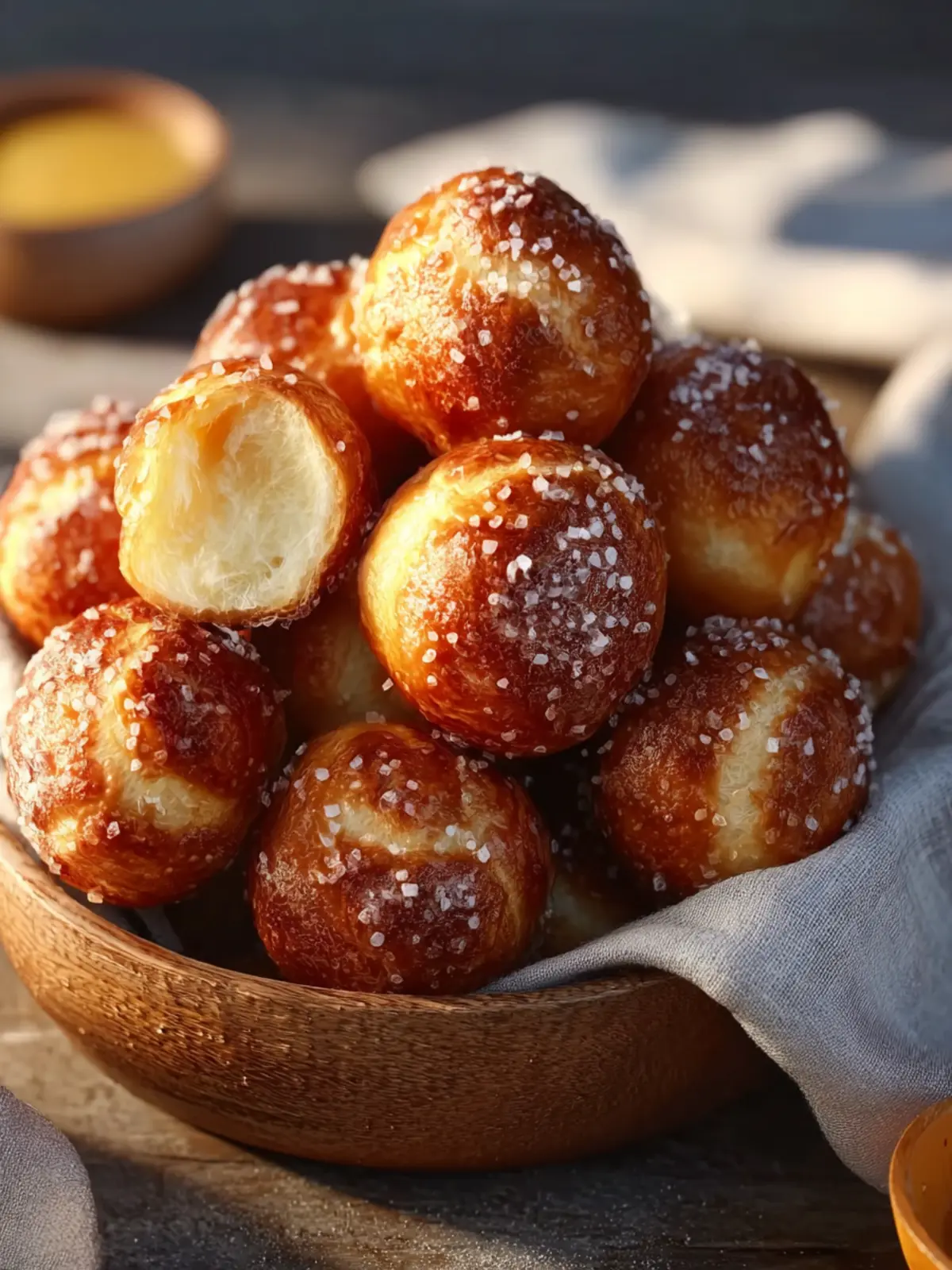 Preheat your oven to achieve a crisp exterior. Baking on a hot stone or baking sheet will ensure even cooking. Brush your pretzel bites with butter right after they come out, then sprinkle with coarse salt for a delightful finish.