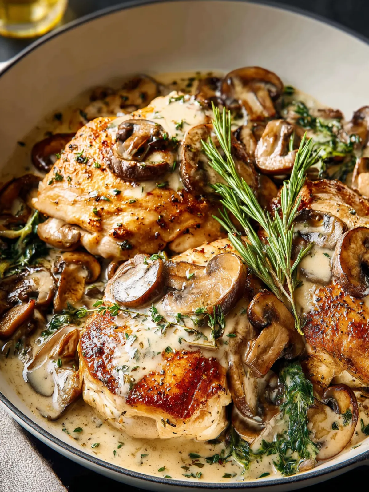 For those cozy nights when you want something extra comforting, serve the creamy mushroom chicken over creamy polenta or a bed of fluffy mashed potatoes. The sauce seeps into the backdrop, creating a delightful fusion that’s sure to satisfy your cravings.