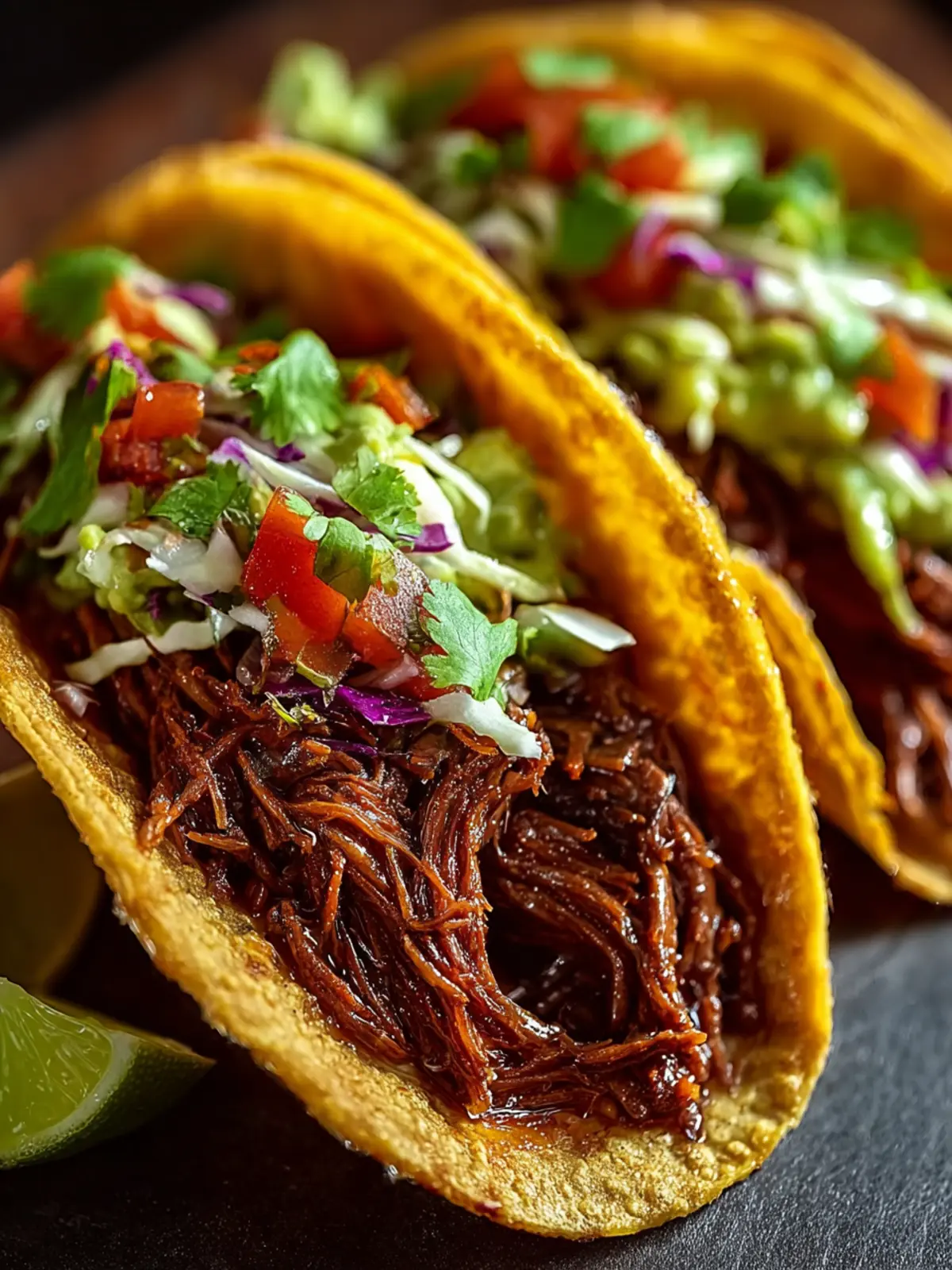 Barbecue Beef Tacos: Mix in your favorite barbecue sauce after shredding the beef. This sweet and tangy twist creates a delightful contrast with the crunch of the taco.